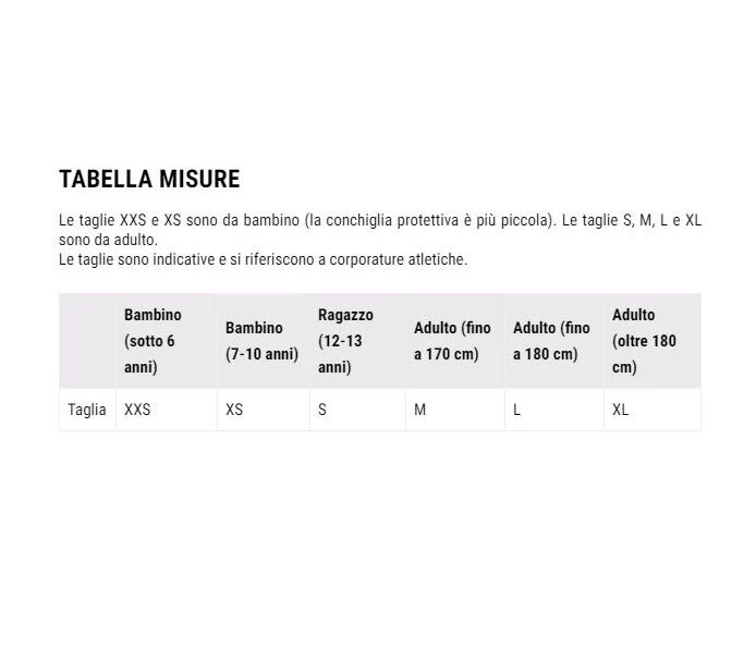 Taglie: Le misure XXS e XS sono per bambini, mentre la taglia S e le successive sono per gli adulti. Assicurati di consultare la nostra tabella misure per trovare la misura giusta.
