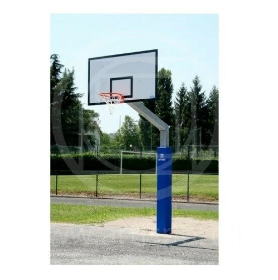 Impianto pallacanestro da esterno, formato da 2 supporti a struttura monotubolare in acciaio zincato a caldo, sezione quadrangolare 15 x 15 cm, sbalzo 165 cm