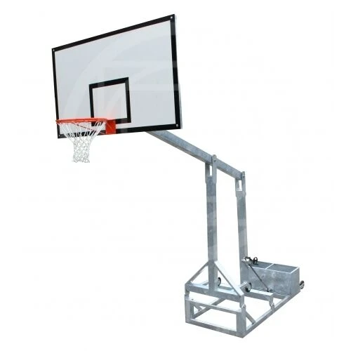 Coppia impianto basket richiudibile con movimentazione a cremagliera, struttura in acciaio zincato a caldo o verniciato a sezione principale 100×100 mm, sbalzo 160 cm.