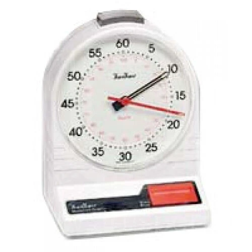 Cronometro da tavolo per basket modello Hanhart, diametro del quadrante 13 cm, a doppia lancetta, minuti e secondi.