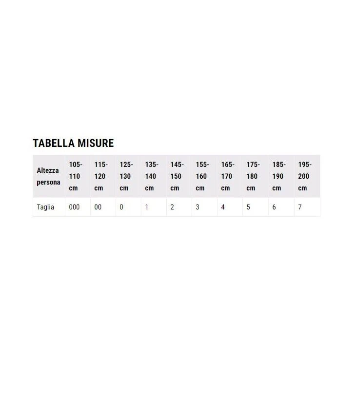 Taglia: 5 (180 cm.), 6 (190 cm.), 7 (200 cm.)