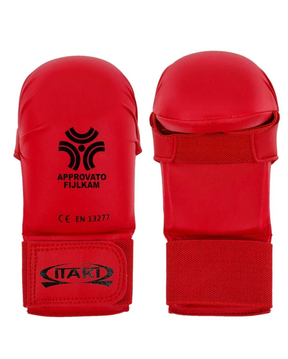 I guantini karate kumite Itaki approvati FIJLKAM sono realizzati con cover in PU che garantisce durata nel tempo e, al contempo, offre una sensazione morbida e confortevole sulla pelle.
