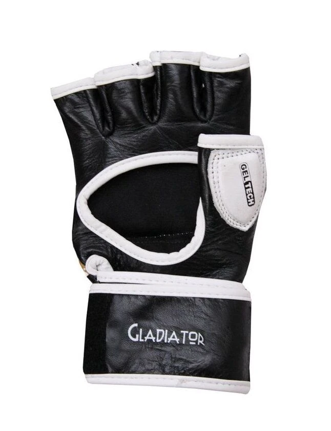 Guanto MMA in vera pelle con palmo aperto. Speciale imbottitura in EVA e gel per una massima protezione delle nocche e delle dita. Chiusura con doppio giro sul polso.