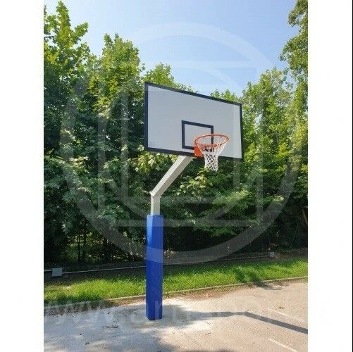 Coppia impianto pallacanestro formato da 2 supporti a struttura monotubolare in acciaio zincato a caldo, sezione quadrangolare 15 x 15 cm, sbalzo 165 cm.