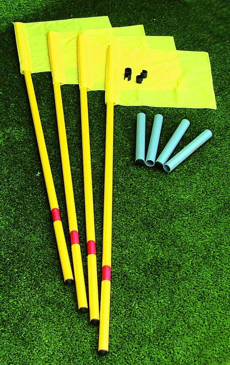 Kit completo di 4 paletti per calcio d’angolo con snodo in PVC diam. 32 mm + bandierine + bussole.