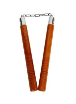 Nuchaku a sezione tonda in legno. Kon uniti da catena e snodi.