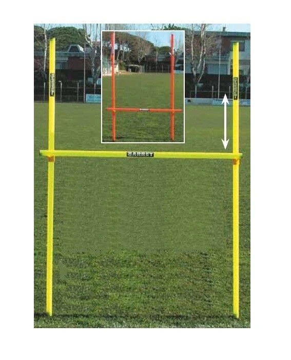 Ostacolo con altezza regolabile, formato da 2 paletti in polipropilene copolimero, con puntale zincato, 1 traversa in PVC e 2 sostegni.