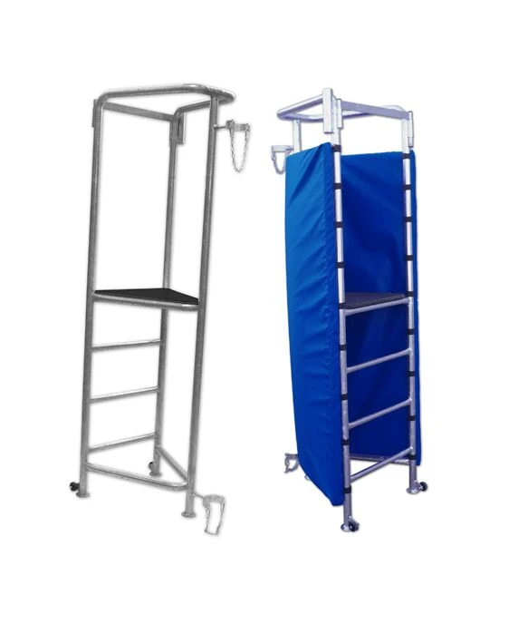Palchetto per arbitro beach volley con struttura interamente realizzata in acciaio zincato con base di forma triangolare.