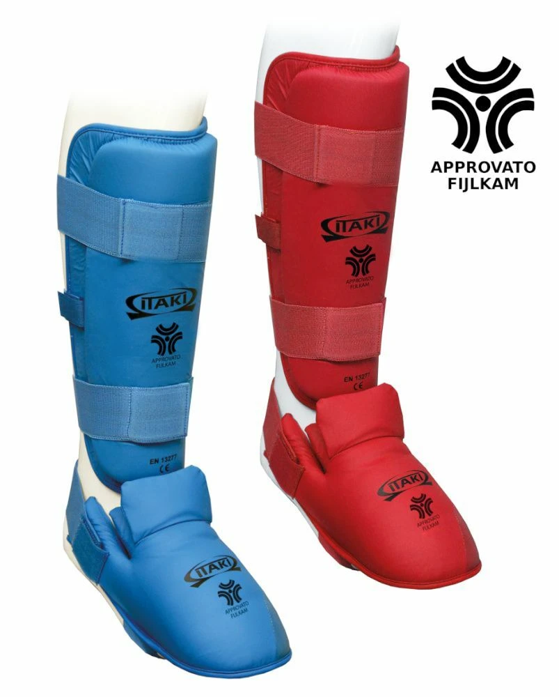 Il paratibia/parapiede Itaki approvato FIJLKAM offre un’alta protezione della tibia, del collo del piede e del piede.