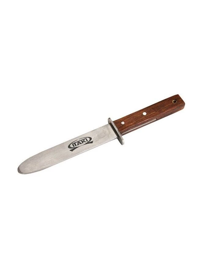 Pugnale con lama in acciaio non affilata con impugnatura in legno.
