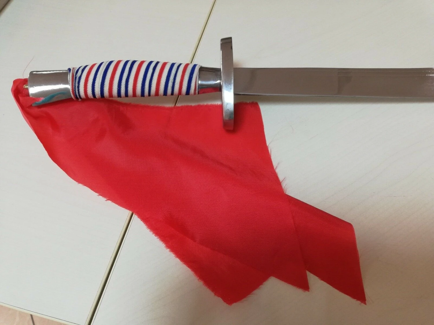 Impugnatura con gomma antiscivolo e due fazzoletti colorati.