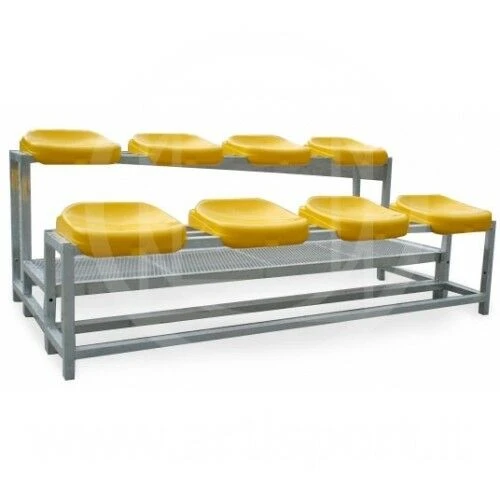 Tribunetta in acciaio zincato, tubo quadro mm. 35 x 35 con seduta da cm. 30 in scocche senza schinale ignifughe classe 1